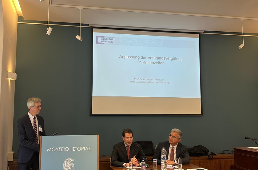 Das wissenschaftliche Programm bot ein breites Spektrum aktueller Fragestellungen aus dem Gesellschafts-, Kapitalmarkt- und Wirtschaftsrecht und vereinte renommierte Referentinnen und Referenten aus Deutschland und Griechenland. Zu den Vortragenden zählten unter anderem Prof. Andreas Cahn, Prof. Barbara Grunewald, Prof. Tim Florstedt, Assoc. Prof. Nikolaos Vervessos, Assoc. Prof. Christina Livada sowie Assistant Prof. Alexandros Rokas. Die Veranstaltung bot einen wertvollen Rahmen für wissenschaftlichen Austausch, anregende Diskussionen und den Ausbau deutsch-griechischer Netzwerke.