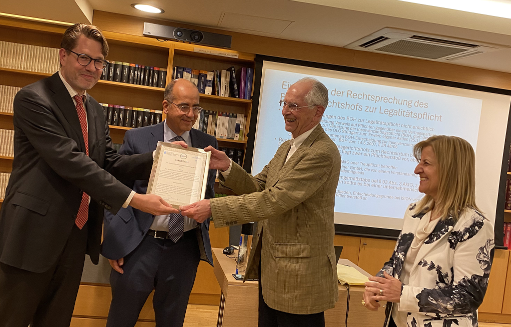 Die Vereinigung durfte sich zudem über die besondere Ehre freuen, dass Herr Prof. Hopt die Ehrenpräsidentschaft übernommen hat.